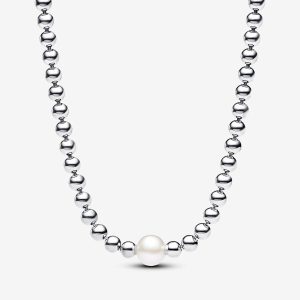 زنجیر ترکیبی طلا و نقره با نگین مروارید Twisted Pearl